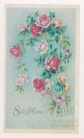 Tarjeta de felicitación por el Día internacional de la mujer con imagen de flores. En el reverso aparece un mensaje manuscrito de felicitación para Finita.