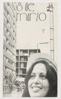 Tarjeta Postal de felicitación por el Día internacional de la mujer con dibujo de flores. En el reverso aparece un mensaje manuscrito en español para Nivia González.