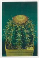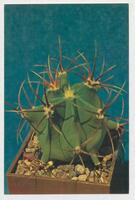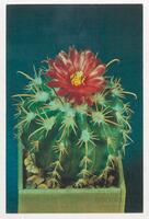 Tarjeta Postal con imagen del cactus Ferocactus histrix Linds, se presenta en América del Norte. En el reverso de la postal aparece una pequeña descripción de las características de dicha planta en ruso y en español.