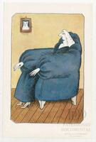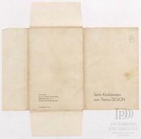 Sobre de Colección de postales con caricaturas relacionadas con temas de diseño. En la parte delantera se observan las siguientes palabras en de; Sechs Karikaturisten zum Thema DESIGN.