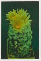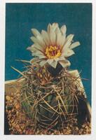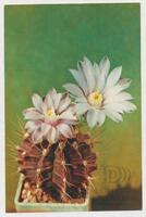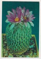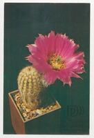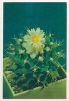Tarjeta Postal con imagen del cactus Gymnocalycium cardenasianum Ritt, oriundo de Bolivia. En el reverso de la postal aparece una pequeña descripción de las características de dicha planta en ruso y en español.