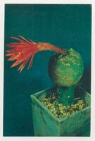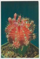 Tarjeta Postal con imagen del cactus Melocactus bahiensis Werd, oriundo de Bahía, Brasil. En el reverso de la postal aparece una pequeña descripción de las características de dicha planta en ruso y en español.