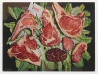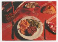 Tarjeta Postal con imagen de un Solomillo relizado en el Restaurante de carne La Grillade en España. En el reverso de la postal aparece una pequeña descripción en español e inglés de cómo se realiza dicho plato.