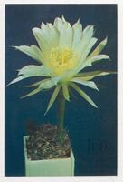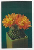 Tarjeta Postal con imagen del cactus Pseudolobivia orozasana Backbg, oriundo de Bolivia. En el reverso de la postal aparece una pequeña descripción de las características de dicha planta en ruso y en español.