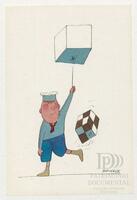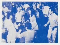 Tarjeta Postal con imagen de los bailes realizados durante el XI Festival Mundial de la Juventud y los Estudiantes en La Habana, Cuba, en 1978. En la parte trasera de la postal se muestra el logo del festival.