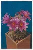 Tarjeta Postal con imagen del cactus Echinocereus purpureus Lahm, se presenta en el sur de Estados Unidos. En el reverso de la postal aparece una pequeña descripción de las características de dicha planta en ruso y en español.