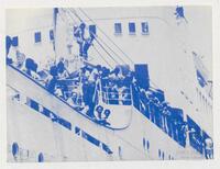 Tarjeta Postal con vista del arribo en barco de las Delegaciones para XI Festival Mundial de la Juventud y los Estudiantes en La Habana, Cuba, en 1978. En la parte trasera de la postal se muestra el logo del festival.