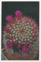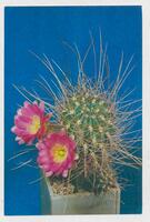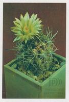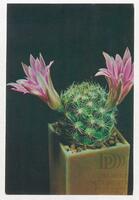 Tarjeta Postal con imagen del cactus Mamillaria spinosissima Lem, oriundo de México. En el reverso de la postal aparece una breve descripción de las características de dicha planta en ruso y en español.