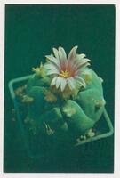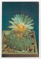 Tarjeta Postal con imagen del cactus Turbinicarpus lophophoroides Buxb. Et Backbg, oriundo de México. En el reverso de la postal aparece una pequeña descripción de las características de dicha planta en ruso y en español.