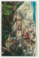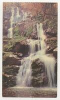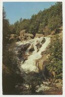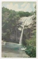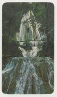 Tarjeta Postal con vista de la cascada El Yunque en el Bosque Nacional del Caribe en Puerto Rico. Al dorso de la postal ofrecen una breve explicación en inglés y español acerca del lugar y se muestra un mensaje manuscrito en español.