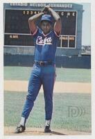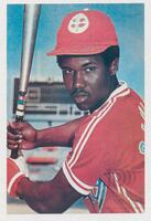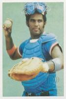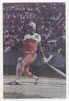 Tarjeta con imagen del beisbolista cubano Orestes Kindelán sosteniendo la pelota. En la parte trasera de la postal aparecen logos y diseños representativos de los Juegos Panamericanos de 1991 en La Habana, Cuba.