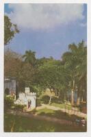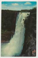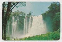 Tarjeta Postal con vista del Salto de Eyipatla cerca de Catemaco en Veracruz, México. En el reverso de la postal aparece un mensaje manuscrito en español de Margarita Villalobos Méndez para Wilfredo y el logo de la editorial.