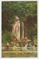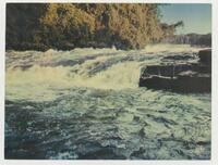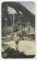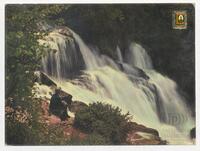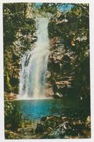 Tarjeta Postal con vista del Salto Río Apanguao en el Estado de Bolívar, Venezuela. Al dorso de la postal aparece el nombre de Josefina Gondelles y el dibujo de una palma.