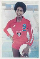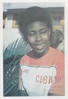 Tarjeta con imagen de la voleibolista cubana Mireya Luis. En el reverso de la postal aparecen logos y diseños representativos de los Juegos Panamericanos de 1991 en La Habana, Cuba.
