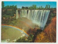 Tarjeta Postal con impresionante vista de la cascada Cola de Caballo en Monterrey, México. En el reverso de la postal aparece un mensaje manuscrito en español para Wilfredo y el logo de la editorial.