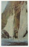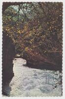Tarjeta Postal con perspectiva de las cataratas Dark Hollow en Vancouver, Canadá. En el reverso de la postal se observa una breve referencia del lugar en inglés, un mensaje manuscrito en el mismo idioma y un cuño gomígrafo del año 1969.