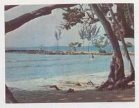 Tarjeta Postal con vista de Dunn´s River Falls en Jamaica. En la parte trasera de la postal se observa una breve referencia del lugar en idioma inglés y el dibujo de una ave.