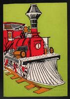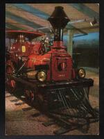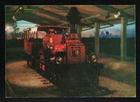 Tarjeta Postal con imagen de la locomotora del primer ferrocarril que corrió entre Copiapo y Caldera (1850). En el reverso de la postal aparece un mensaje en español de Nany para su amiga Luisa M. Díaz.