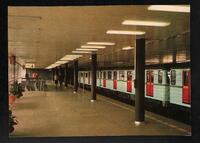 Tarjeta Postal con vista interior de la Estación del Metro Gottwaldova en Praga, República Checa. Al dorso de la postal se muestra el logo de la editorial.
