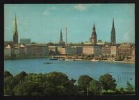 Tarjeta Postal con vista panorámica de la Iglesia Memorial Emperador Guillermo en la ciudad de Berlín, Alemania. Se encuentra ubicada en la Plaza de Breitscheidplatz junto a la avenida de Kurfürstendam.