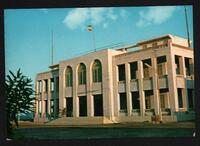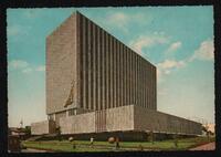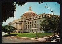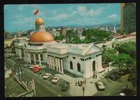 Tarjeta Postal con vista general del edificio de la Corte Suprema de Justicia en San José, Costa Rica. En la parte trasera de la postal aparece una breve referencia del edificio en español e inglés.
