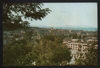 Tarjeta Postal con vista parcial de una parte de la ciudad de Mayaguez en Puerto Rico. Foto de Herbert E. Miller. En el reverso de la postal aparece un mensaje en español de Gitanita para José Pérez, un sello postal y un cuño casi borroso.