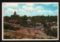 Tarjeta Postal con imagen del pueblo viejo de Auburg en California, Estados Unidos. En la parte inferior izquierda aparece una pequeña nota acerca del oro descubierto en ese pueblo.