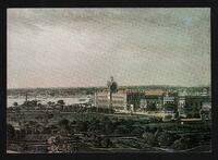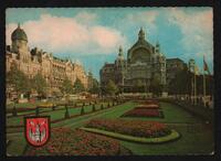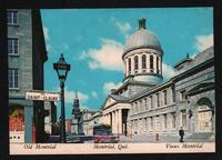 Tarjeta Postal con vista del Bonsecours Market en la vieja ciudad de Montreal erigida en 1845 y la calle Saint-Claude en Canadá. En el anverso de la postal se muestra el nombre de la ciudad en francés y en el reverso de la misma aparecen un mensaje manuscrito en inglés de Esther para Teresa Pérez y dos cuños.