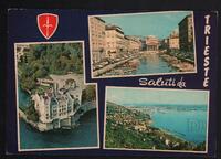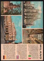 Tarjeta Postal con imágenes de la ciudad de Milán, Italia. En el anverso de la postal aparecen varios lugares como The Cathedral, Gallery V. Emanuel II, The Sforza´s Castle y Alla Scala Theatre y una breve historia de la ciudad en tres idiomas. También se muestra un mensaje en español de Tony para Tere y Andrés.