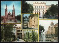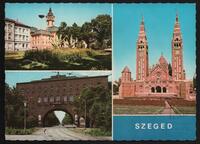 Tarjeta Postal con varias imágenes de la ciudad de Szeged en Hungría. Foto: Radó, L. En el reverso de la postal aparece un mensaje en español para Juan Otero.