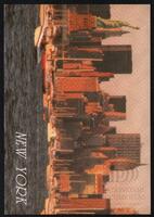 Tarjeta Postal con la imagen de la Estatua de la Libertad y el horizonte neoyorkino en Estados Unidos. Impreso en Tailandia. En el anverso de la postal aparece el nombre de la ciudad.
