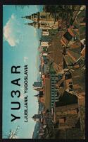 Tarjeta Postal con una vista panorámica de la ciudad de Ljubljana en Eslovenia. En el anverso de la postal aparece Yu3ar, Ljubljana, Yugoslavia y en el reverso de la misma Yugoslav Travel Agency Kompas.