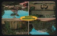 Tarjeta Postal con imágenes de la ciudad de Villahermosa en Tabasco (México); se muestra en el anverso de la postal el Invernadero en el Centro de Convivencia Infantil, Jaula de Jaguar (Museo de la Venta), Gran Altar (Museo de la Venta) y los Juegos en el Centro de Convivencia Infantil. Fotos Gabriel Salazar. Distribuido por Postales y Publicidad Gazar, Verazcruz, México.