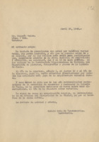Mecanuscrito. El autor no dice el nombre del compañero a quien está dirigida la carta. Fechada en abr.30/1945