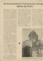 La Carta está dirigida al Alcalde Municipal pidiendo su autorización para la demolición de la iglesia de Paula alegando que el edificio está en estado ruinoso, completamente deteriorado. Mecanuscrito. Fechada en jul.20/1944