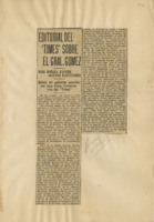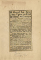 A la cabeza del artículo y mecanografiado : La visita de J. M. Gómez al presidente de E.U. No tendrá carácter político la entrevista : es solo una cortesía del ex-presidente a su paso por Washington.