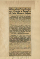 Contiene : Un cable de Céspedes.- Contesta José Miguel.- Loynaz ratifica.- El peligro intervencionista.- Hay que salvar la República.- Hay mucho qué hacer.
