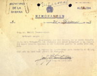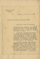 Carta mecanuscrita en la cual Menocal agradece a José Miguel Gómez por los votos a favor de la prevención con respecto a la unificación de las fuerzas políticas en el interés común de asegura la tranquilidad pública y la prosperidad nacional.