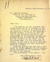 Texto en inglés. Dirigido por Robert A. West con fecha 10 de noviembre de 1917 a Herbert Stabler, jefe de la División de Asuntos Latinoamericanos del Departamento de Estado y al que adjunta un memorandum escrito por un americano sobre la situación política en Cuba, considerándolo de gran interés y fiel análisis de esta situación