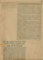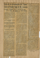 Es la reproducción íntegra de laINFORMACIÓN de referencia, debidamente traducida. En la pág. 37 aparecen varias reseñas sobre el propio tema con estas fuentes : El Mundo, ene.3/1921 y La Prensa ene. 3/1921. El artículo está mutilado en la pág. 37.
