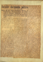 Carta de W. Taft al presidente J. Rooselvet sobre el posible pacto entre el Partido Moderado y el Liberal para elegir un presidente provisional no previsto en la Constitución. También le informa de la renuncia de Estrada Palma y que no hubo quorum en el Congreso y Taft recomienda al presidente de Estados Unidos tomar control de la situación.-Carta de T. Rooselvet como respuesta a Taft en la que plantea no tomar control de la situación en Cuba hasta agotar los esfuerzos por conseguir la paz.-Gaceta oficial, sept. 28/1906, año V, No. 77 : renuncias de T. Estrada Palma y D. Méndez Capote.