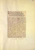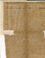 Carta de Gómez a su esposa en el momento de su destitución : contiene las causas de la misma, el manifiesto con el cual contestó a la Asamblea titulado "Al país y al ejército" fechada el 2 de abril de 1899. El documento se encuentra en mal estado.