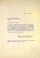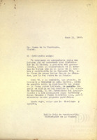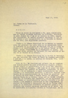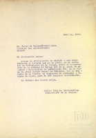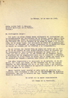Mecanuscrito. Copia en págs. 15-16; 151-152. Acusa recibo de su misiva del día 7 en la que se hace referencia a la moción presentada por el concejal Ángel Bertematy para la erección en la Plaza de Armas de una estatua a Carlos Manuel de Céspedes que substituya la allí existente de Fernando VII, moción a la que brinda su apoyo.