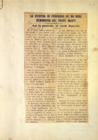 Mecanuscrito. Hace referencia al traslado de la estatua de Fernando VII situada en el Paseo Martí y los criterios que tal hecho provocó. J.A. Treserra es el Historiador de la ciudad de Matanzas.