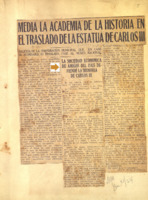 Mecanuscrito. Información que parece tomada de la Academia de Historia de Cuba, La Habana, 1946, págs. 12-15. Discurso leído en la sesión solemne celebrada el 10 de octubre de 1946. El texto propone que la erección del monumento a Céspedes sea en la Plaza de Armas, retirándose de ella la estatua de Fernando VII.