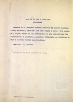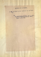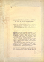 Mecanuscrito. Se trata de la entrega de la estatua del Apóstol Santiago al presbítero Antonio Ignacio de Villa Goicochea, apoderado del fallecido obispo Morell de Santa Cruz.