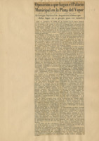 Oposición a que hagan el Palacio Municipal en la Plaza del Vapor : el Colegio Nacional de Arquitectos estima que dicho lugar no es propio para ese empeño.