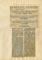 Incluye fotografías. Son opiniones contra el juego de diversas PERSONALIDADESs : Miguel A. Suárez, Aurelio Espinosa y J.A. Lavastida.