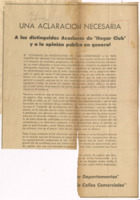 Una aclaración necesaria : a las distinguidas asociadas de "Hogar Club" y a la opinión pública en general.