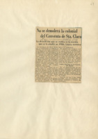 Realizan desbarates en el convento de Santa Clara sin autorización de la Junta Nac. de Arqueología : dícese es para demoler naves fabricadas por Carlos M. de Céspedes…
